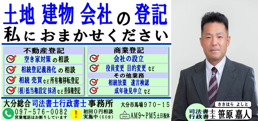 司法書士笹原は、初回訪問0円相談に対応しています(大分県内)。